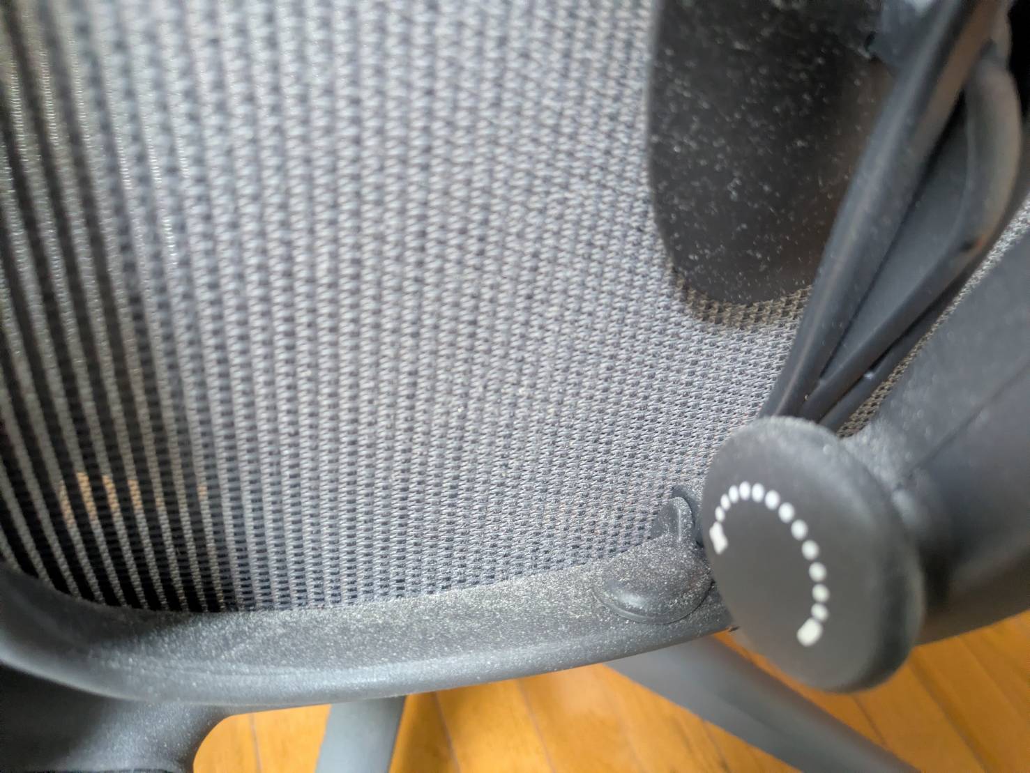 アーロンチェアというよりメッシュチェアの宿命でしょうが、椅子の各部にとにかくほこりが溜まります。